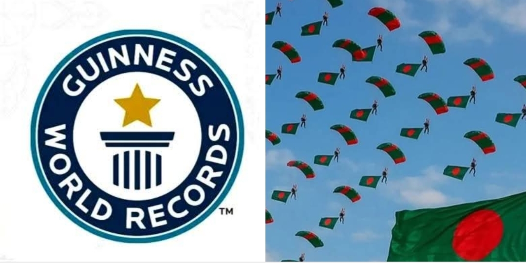 গিনেস ওয়ার্ল্ড রেকর্ডসে জায়গা করে নিয়েছে ২০২৫ সালের ১৬ ডিসেম্বর পতাকা হাতে ৫৪ জনের প্যারাট্রুপিং।