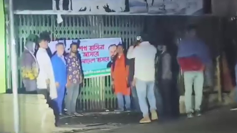 টাঙ্গাইলের গোপালপুর উপজেলায় দেড় বছর ধরে বন্ধ থাকা কার্যক্রম নিষিদ্ধ আওয়ামী লীগ কার্যালয়ের সামনে দলীয় ব্যানার টাঙিয়ে জাতীয় পতাকা উত্তোলন করেছেন নেতাকর্মীরা। বৃহস্পতিবার (১৯ ফেব্রুয়ারি) ভোরে এ ঘটনা ঘটে। এ ঘটনায় ৩৫ সেকেন্ডের একটি ভিডিও সামাজিক যোগাযোগমাধ্যমে ছড়িয়ে পড়ে, যা নিয়ে ব্যাপক আলোচনা-সমালোচনা শুরু হয়।