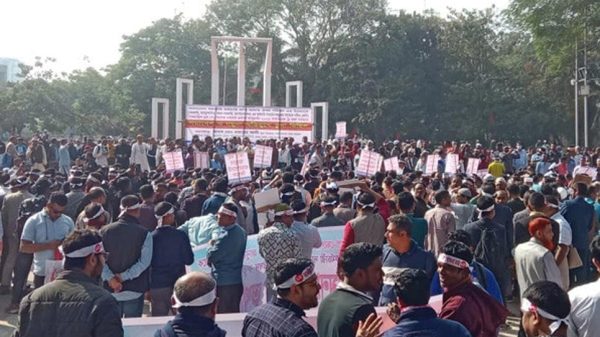 ৯ম পে-স্কেলের গেজেট বাস্তবায়নের দাবিতে সরকারি কর্মচারীদের সমাবেশ